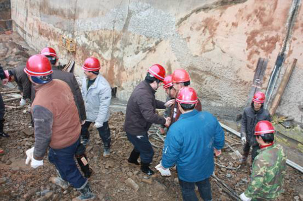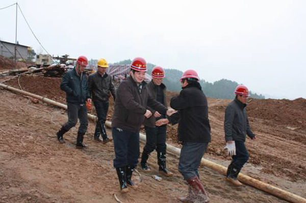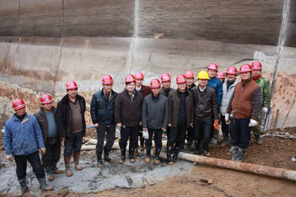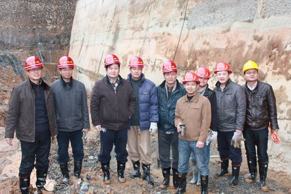 董事長、總經(jīng)理王元旦一行首先來到基坑澆筑、混凝土攪拌站等施工現(xiàn)場進(jìn)行察看,與施工人員一一握手,并聽取了春節(jié)期間帶領(lǐng)員工奮戰(zhàn)在施工一線的公司副總經(jīng)理聶玉和的生產(chǎn)情況匯報(bào)。董事長、總經(jīng)理王元旦詳細(xì)詢問了攪拌站的生產(chǎn)能力能否滿足施工要求,工程的進(jìn)展情況及后期施工中的各項(xiàng)措施,對項(xiàng)目部全體員工放棄節(jié)假日搶工期、保質(zhì)量、抓進(jìn)度的奉獻(xiàn)精神給充分肯定和高度評價(jià),他勉勵(lì)大家保證質(zhì)量安全的前提下,抓緊時(shí)間完成大壩防滲面板的施工、再苦再累也要咬緊牙關(guān)挺過去,并要求施工項(xiàng)目部合理安排好大家春節(jié)期間的工作和生活。