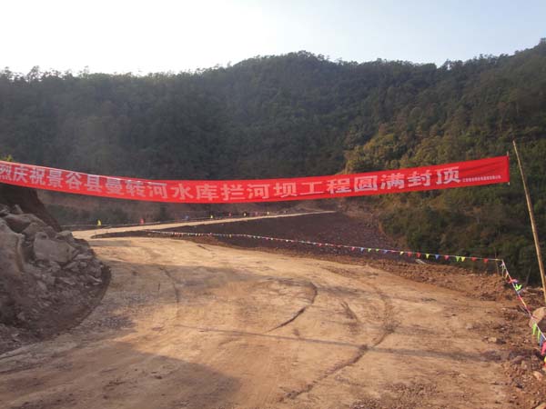 我公司2010年5月中標承建的云南省普洱市景谷縣曼轉河水庫攔河壩工程歷時950余日歷天,于2013年1月15日圓滿完成大壩封頂,標志著該項目的主體工程基本完成。 曼轉河水庫攔河壩工程為粘土心墻風化料壩,最大壩高75.5米,2010年5月31日正式開工建設,總投資7859萬元。