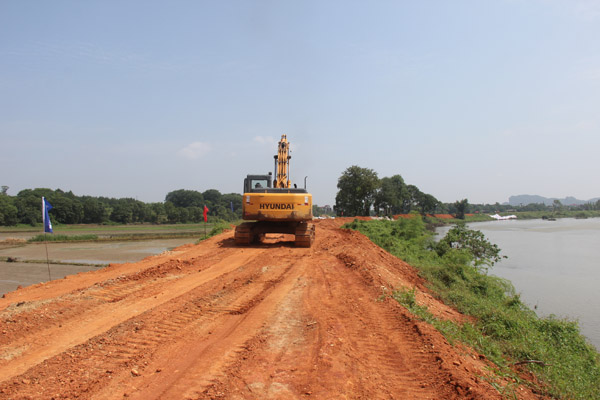 迎水面鋪設(shè)防沖彩條布