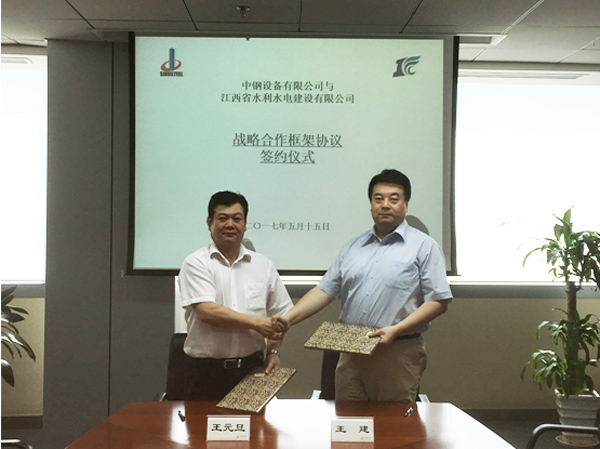 2017年5月15日,江西省水利水電建設有限公司與中鋼設備有限公司戰(zhàn)略合作框架協(xié)議簽約儀式在北京舉行。公司董事長王元旦與中鋼設備有限公司總經理王建代表雙方簽署了戰(zhàn)略合作框架協(xié)議。公司海外公司副總經理熊昊冠和中鋼設備能源與基礎設施部副部長閆永軍、國際市場部副部長王思奇、市場主管姬曉軍參加簽字儀式。王建表示中鋼公司有著海外平臺優(yōu)勢,江西水建擁有水利水電、房建和市政領域的技術優(yōu)勢,希望雙方以此次戰(zhàn)略合作簽署為契機,借助各自在資源、業(yè)務等方面的綜合優(yōu)勢,在巴基斯坦市場以及其他國別市場攜手共進,推進重點項目落地,共謀發(fā)展。公司董事長王元旦對中鋼設備的支持表示感謝。他表示此次合作將會是一個友好的開端,真誠希望雙方在國家“一帶一路”戰(zhàn)略指引下進一步加深交流,探索多方位、深層次合作,實現(xiàn)互利共贏。