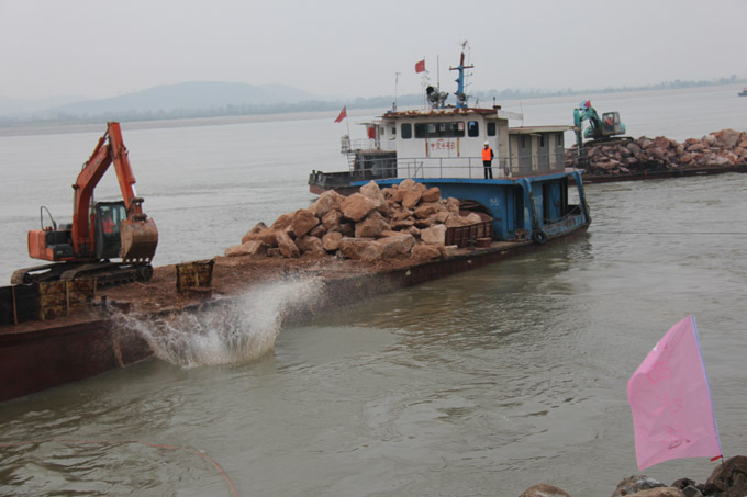 (九江長江江心洲固岸應急度汛工程,包括九江縣江新洲1標和彭澤縣棉船洲1標,主要建設內容為拋石、砼四邊六面框架、干砌石護坡,工程施工期2個月,項目總投資4000萬元。江新洲和棉船洲大堤共保護面積130.39 平方公里,保護耕地12.18萬畝,保護人口8.39萬人,圩區內土地肥沃,灌溉便利,是江西省的重要棉油生產基地。)