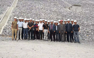 學(xué)習(xí)團(tuán)第一站是大麥西項(xiàng)目,項(xiàng)目負(fù)責(zé)人熊錦江帶領(lǐng)大家參觀了項(xiàng)目營地并對項(xiàng)目營地規(guī)劃建設(shè)、布置原則,水電解決方案等作了介紹。學(xué)員們隨后又參觀了油料庫、鋼筋加工、砂石料生產(chǎn)系統(tǒng)、混凝土制拌系統(tǒng)、上壩公路、導(dǎo)流涵管、溢洪道及主壩施工區(qū),項(xiàng)目負(fù)責(zé)人給學(xué)員們講解了現(xiàn)場各個作業(yè)面的安全預(yù)防把控、管理核心、質(zhì)量控制點(diǎn)、施工工藝程序等。學(xué)習(xí)期間,學(xué)員們和項(xiàng)目部在會議室召開了簡短的座談會,大家觀看PPT并進(jìn)行交流,通過溝通學(xué)員們進(jìn)一步了解和掌握了大麥西項(xiàng)目的難點(diǎn)要點(diǎn)。
