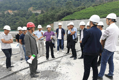 第二站,學(xué)習(xí)團(tuán)來到新屯水庫,跟隨著項(xiàng)目管理團(tuán)隊(duì)參觀了導(dǎo)流隧洞、上壩公路、主壩施工區(qū)、進(jìn)水塔、溢洪道、沉降觀測室、料場、復(fù)建公路等施工區(qū)域,隨后由項(xiàng)目副經(jīng)理向國華、測量負(fù)責(zé)人鄒國群及質(zhì)量負(fù)責(zé)人廖軼先分別就各自負(fù)責(zé)的工作內(nèi)容向?qū)W員們進(jìn)行了現(xiàn)場授課。通過現(xiàn)場學(xué)習(xí),學(xué)員們了解到該工程七大特點(diǎn)。