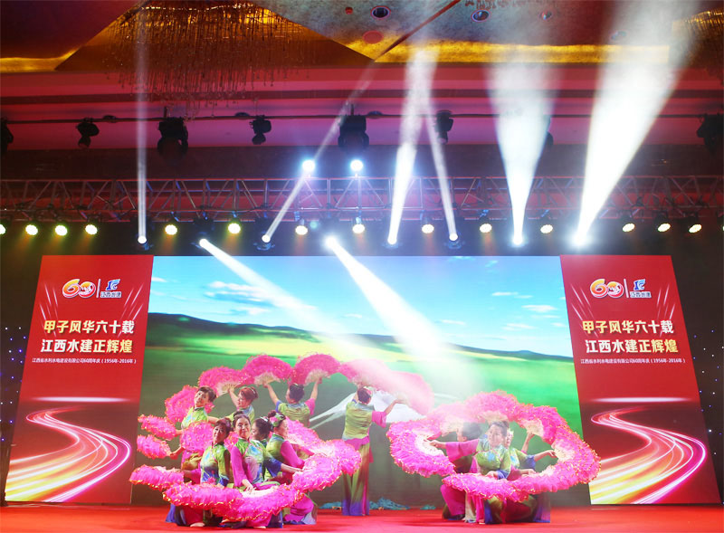 在喜慶熱鬧的開場舞《盛世中華》樂曲聲中,拉開了晚會的序幕,一曲優(yōu)美動聽的《今天是你的生日》,表達了對公司六十華誕的深情祝福,配樂詩朗誦《我驕傲,我是水建人》抒發(fā)了水建人對水利事業(yè)的熱愛與執(zhí)著,舞蹈《我的祖國》,展現(xiàn)了公司退休女職工的精神風采和對公司的深厚感情,男聲獨唱《羅灣那個地方》,喚起了多少“羅灣水建人”曾經(jīng)在那里生活的記憶,來自上海的退休職工代表,為晚會帶來一首自己改編的歌曲《水建的朋友來相會》,詮釋了他們的激情與夢想,最后,由公司高中層管理人員和總部員工組成的60人大合唱《團結就是力量》,把晚會推向了高潮。團結是我們的力量之源,團結是企業(yè)騰飛的支點,走過了六十年輝煌歷程的江西水建,正在昂首闊步踏上新的征程。讓我們團結起來,以必勝的信心,發(fā)奮的努力,繼承和發(fā)揚老一輩水建人的精神和傳統(tǒng),擔當起新一代水建人改革創(chuàng)新科學發(fā)展的光榮使命,繼往開來,解放思想,開拓創(chuàng)新,凝心聚力,不斷開創(chuàng)江西水建發(fā)展的新局面,創(chuàng)造更加燦爛的明天!