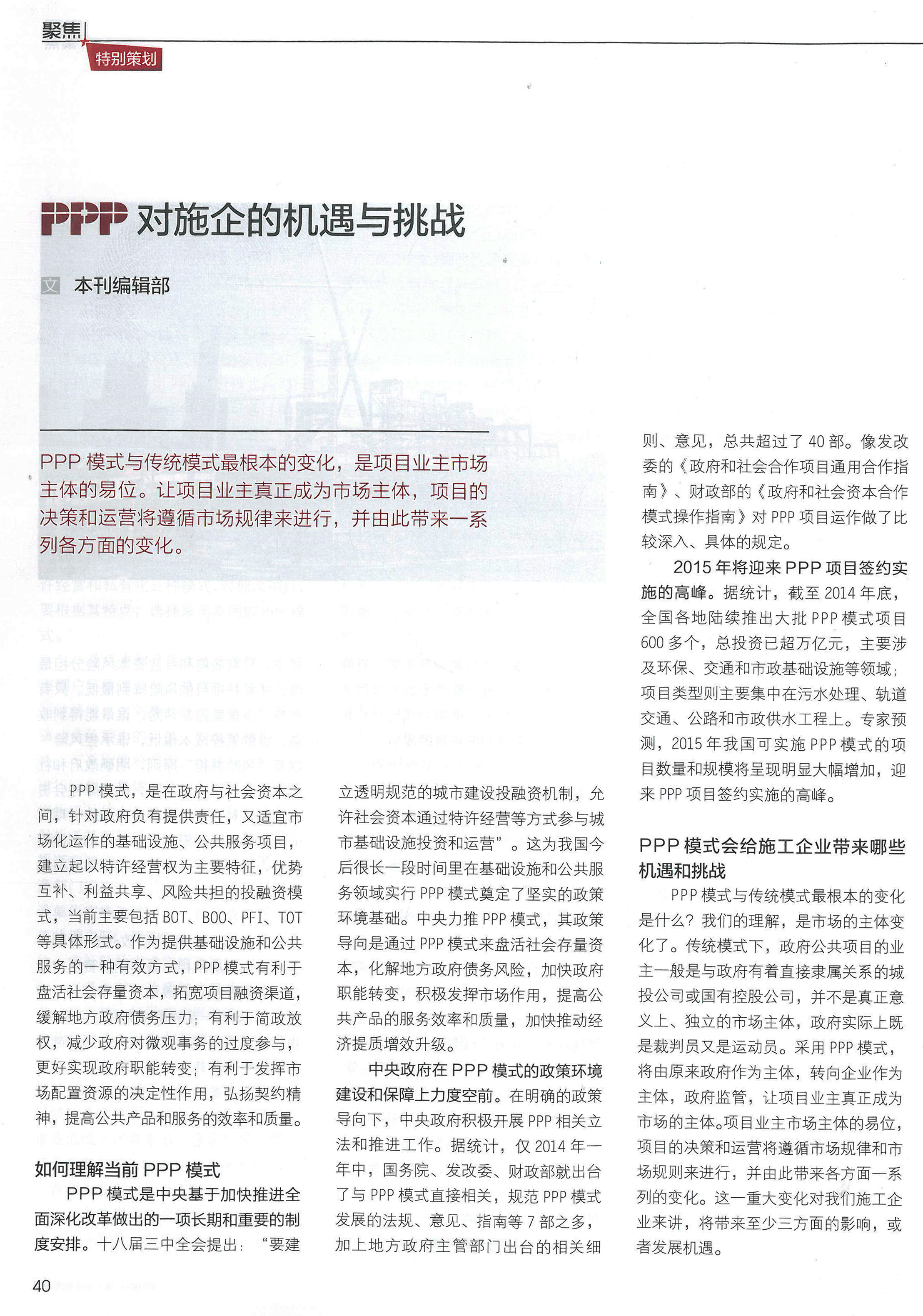PPP對施企的機(jī)遇與挑戰(zhàn)